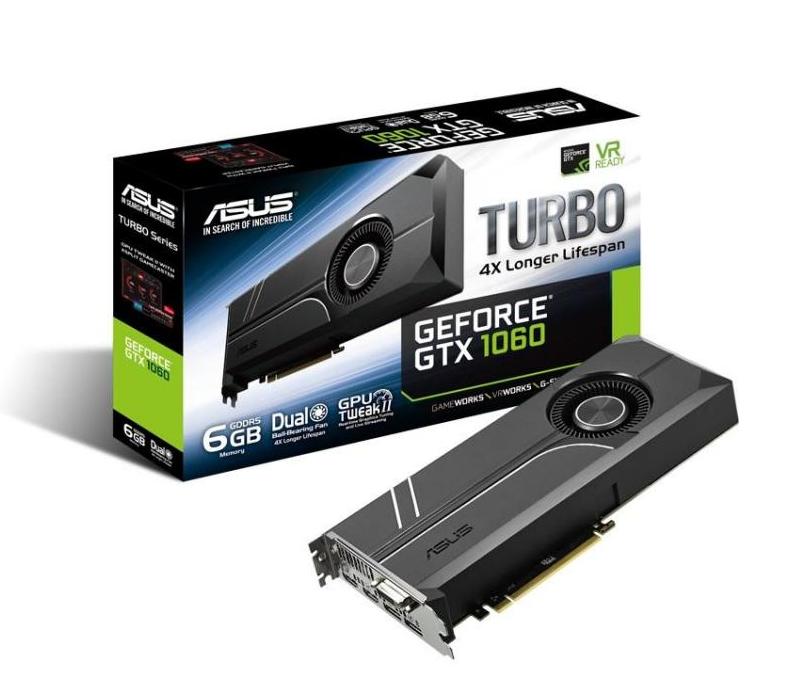| ASUS Turbo GeForce GTX 1060 (Base: 1506MHz,Boost: 1708MHz), 6GB GDDR5 (8008MHz), PCI-E 3.0, DVI, 2x HDMI, 2x DisplayPort |