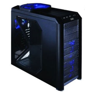 Antec Nine Hundred Two - The Ultimate Black Gaming Case with additional USB3.0 and bottom-mounted 2.5"SSD drive support * 10 drive bays - External 3 x 5.25"; Internal 6 x 3.5" for HDD, or - External 6 x 5.25"; Internal 3 x 3.5" for HDD, or - External 9 x 5.25" - Internal 1 x bottom-mounted 2.5" SSD drive * CPU cutout allows for easy installation of CPU coolers * Advanced cooling system: - 1 rear 120 mm TriCool™ fan with 3-speed switch control - 1 top 200 mm TriCool™ fan with 3-speed switch control - 2 front 120 mm special black TriCool™ blue LED fans with 3-speed switch control to cool HDDs - 1 side (optional) 120 mm fan to cool graphic cards - 1 middle (optional) 120 mm fan to cool CPU or graphic cards (shown in the image above) * 8 expansion slots to support multiple graphics cards, including NVIDIA 3-way SLI® * Front mounted I/O ports - 2 x USB 2.0 - 1 x USB 3.0 - Audio In and Out (AC’97 and HDA compatible) * Motherboard: Mini-ITX, microATX, Standard ATX * No power supply included * Unit Dimensions: - 19.4” (H) x 8.1” (W) x 18.4” (D) - 493 mm (H) x 206 mm (W) x 467 mm (D) *• Box Dimensions: - 21.5” (H) x 10.6” (W) x 21.1” (D) - 546 mm (H) x 269 mm (W) x 536 mm (D) * Weight: - Net: 25.4 lbs / 11.5 kg - Gross: 28.9 lbs / 13.1 kg |