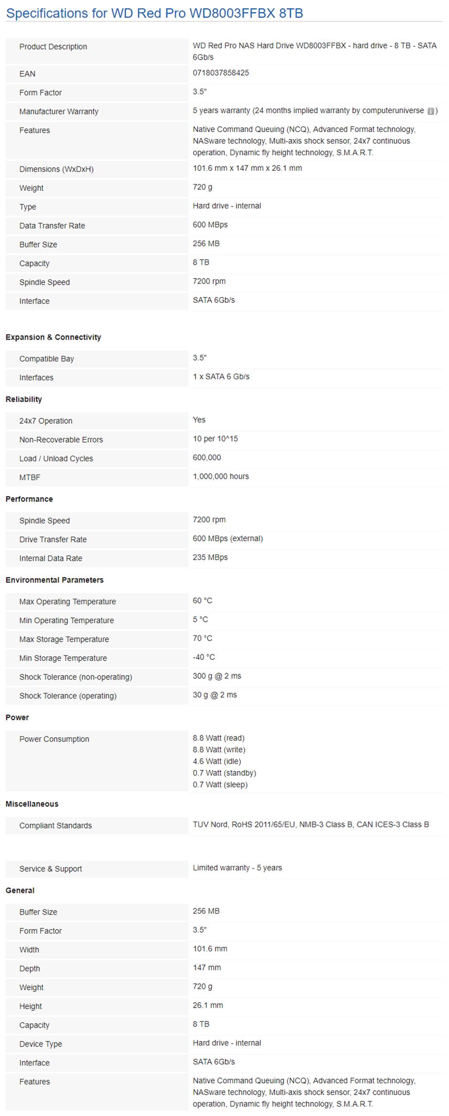 WD WD8003FFBX 8TB Red PRO 3.5" 7200RPM SATA 6Gb/s NAS Hard Drive - 8TB Storage - Sata 6GB/S - 7200 RPM - 256MB Buffer Size