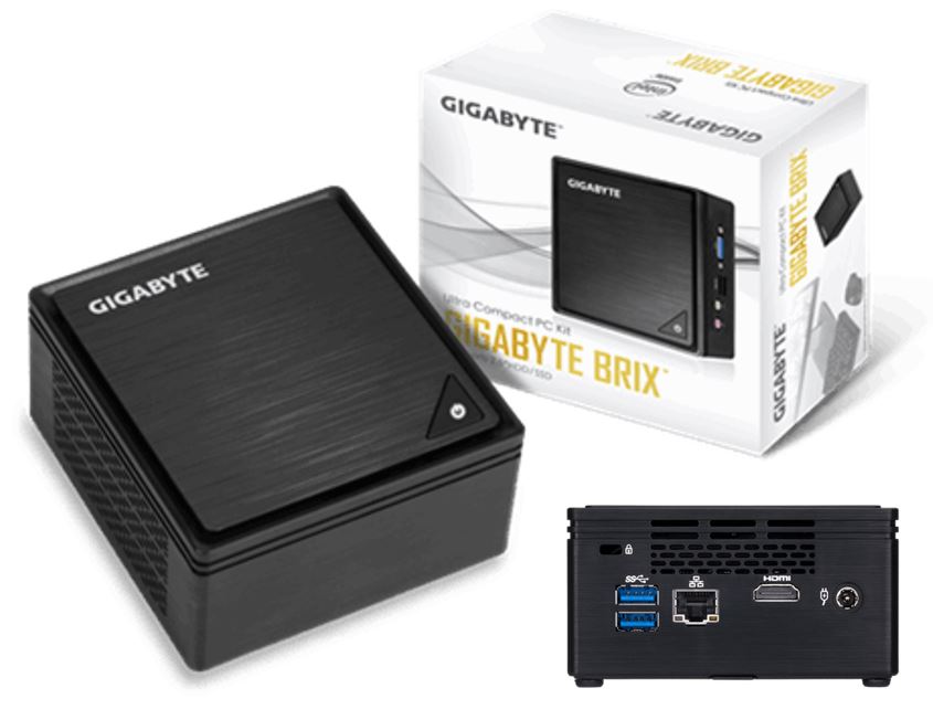 Gigabyte GB-BPCE-3455C Brix Mini NUC PC 0.6L Celeron J3455 DDR3L SODIMM HDMI VGA 1x2.5" SSD 1xM.2 PCIe 4xUSB3 WiFi GbE LAN VESA Ultra Compact Barebone