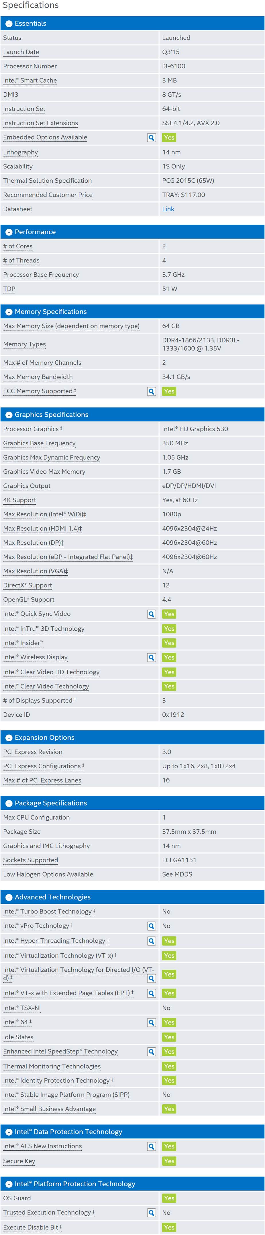 Intel Core i3-6100 3.70 GHz CPU