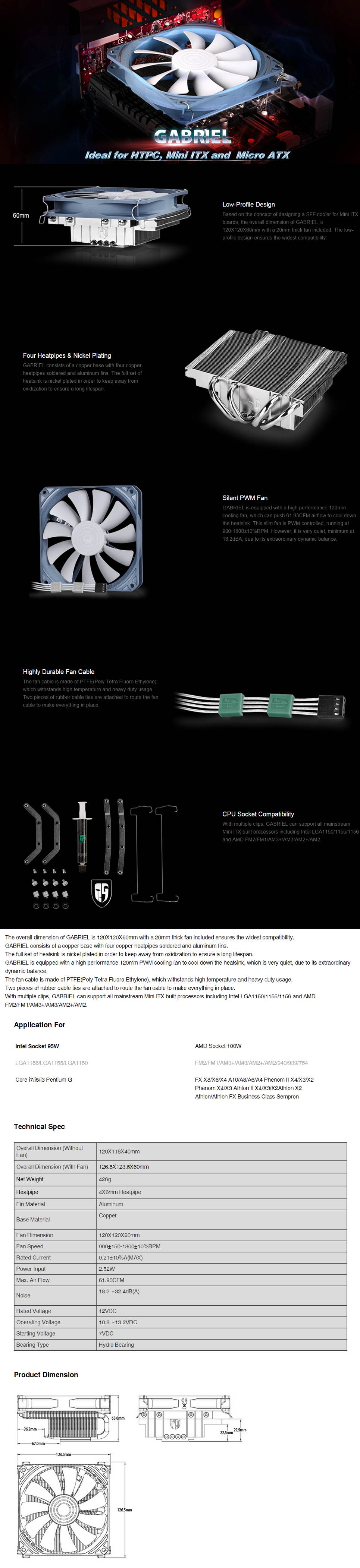 DeepCool Gamer Storm Gabriel 120mm PWM Fan Multi-Socket CPU Cooler - 120 x 120 x 20mm PWM Fan - Supports: Intel LGA1150/1155/1156 and AMD FM2/FM1/AM3+/AM3/AM2+/AM2 - 18.2~32.4dB(A) - 61.93CFM - 1 Year Warranty