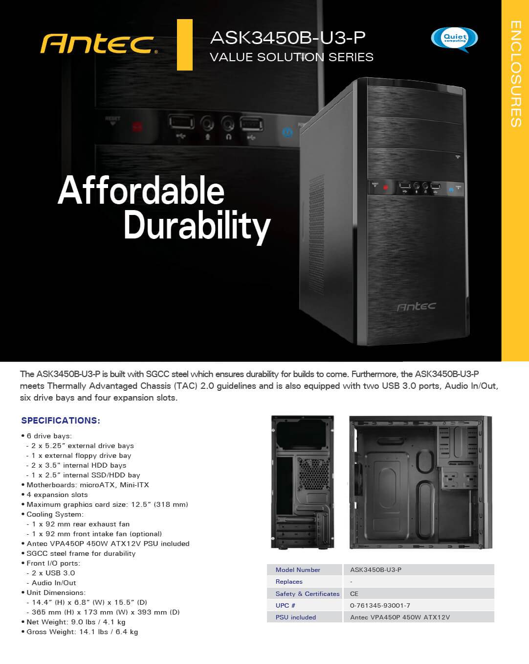 DIY COMPUTERS--Case / PSU / UPS----Antec ASK3450B Mid Tower Case with 450W PSU