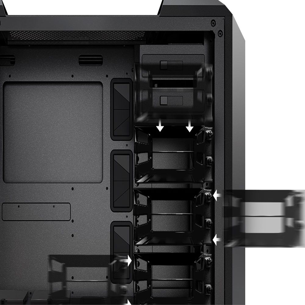 Looking for something more unique? FreeForm enables the option to install three front-mounted 140mm fans and a 280mm radiator for unmatchable ventilation due to a unique facility to horizontally shift the bottom-mounted hard disk drives. There¡¯s also support for up to six 140mm fans through the case, unique for a mid-sized tower. | |