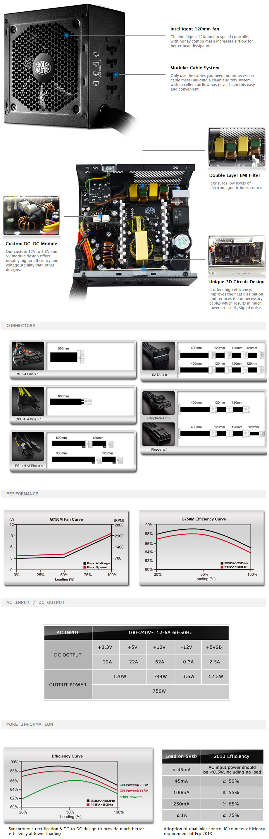 Cooler Master GM Series 80Plus Bronze 750W Modular Power Supply - ATX 12V V2.31 - 80 PLUS Bronze Certified - Modular Design - 120mm Cooling Fan (RS750-AMAAB1-AU)