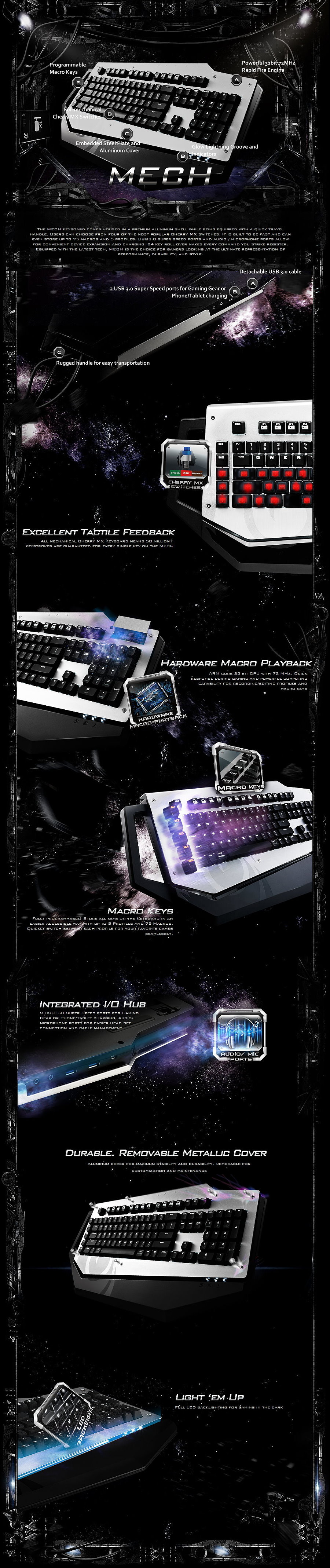 Cooler Master CM Storm MECH Gaming Keyboard - Cooler Master - Cherry MX Brown Switches - Cooler Master - Aluminium Shell - Travel Handle - ARM Core 32 CPU (72MHz) - 1000 Hz/1ms Polling Rate - 128kb Memory - 15 Macro Keys - Dual USB 3.0/mini USB Port - (SGK-7000-MBCM1)