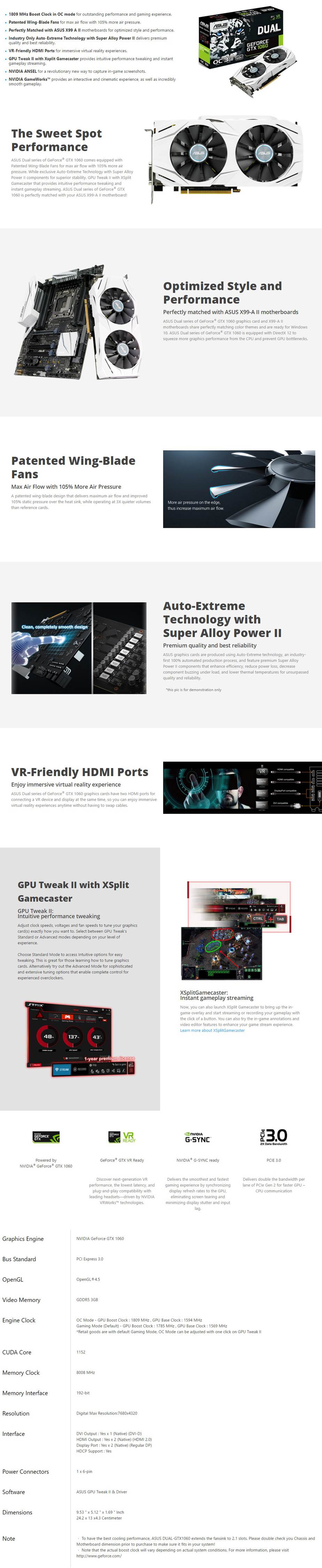 ASUS GeForce GTX 1060 DUAL OC 3GB Video Card