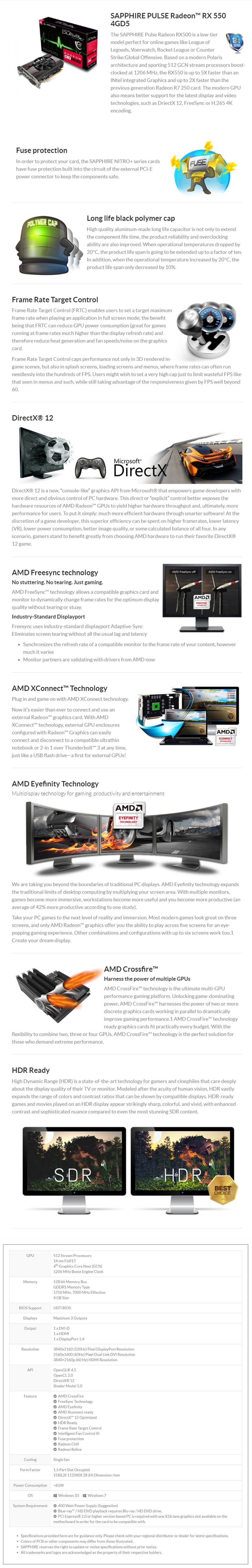 Sapphire Radeon RX 550 PULSE OC 4GB GPU