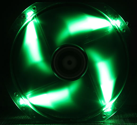 BitFenix Spectre 200mm Black Tinted Transparent Fan with GREEN-LED, Sickle Fan Blades Design